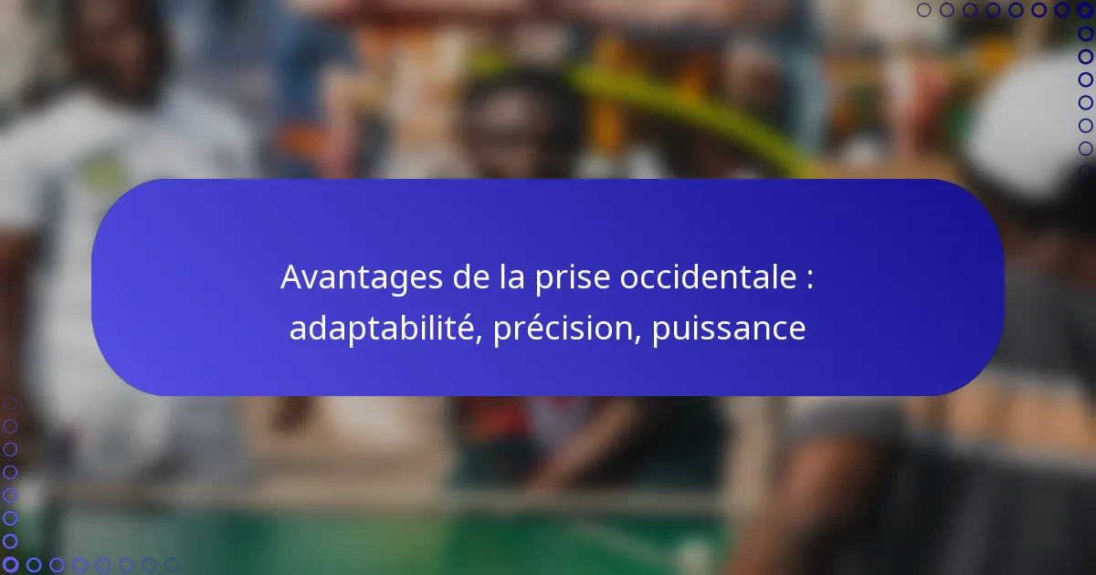 Read MoreLa prise occidentale est une technique polyvalente qui offre aux athlètes des avantages significatifs, notamment l’adaptabilité, la précision et la